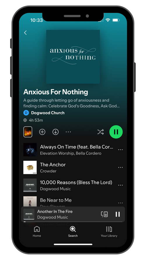 Access our “Anxious For Nothing” playlist on most major streaming platforms to help you worship throughout the week!